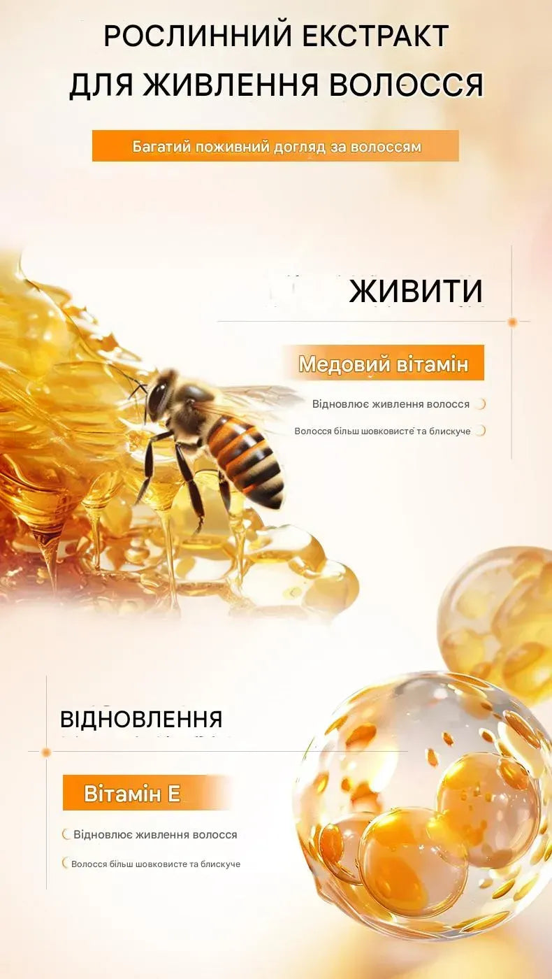 L'extrait de miel nourrit et hydrate les cheveux, les rendant doux et lisses.