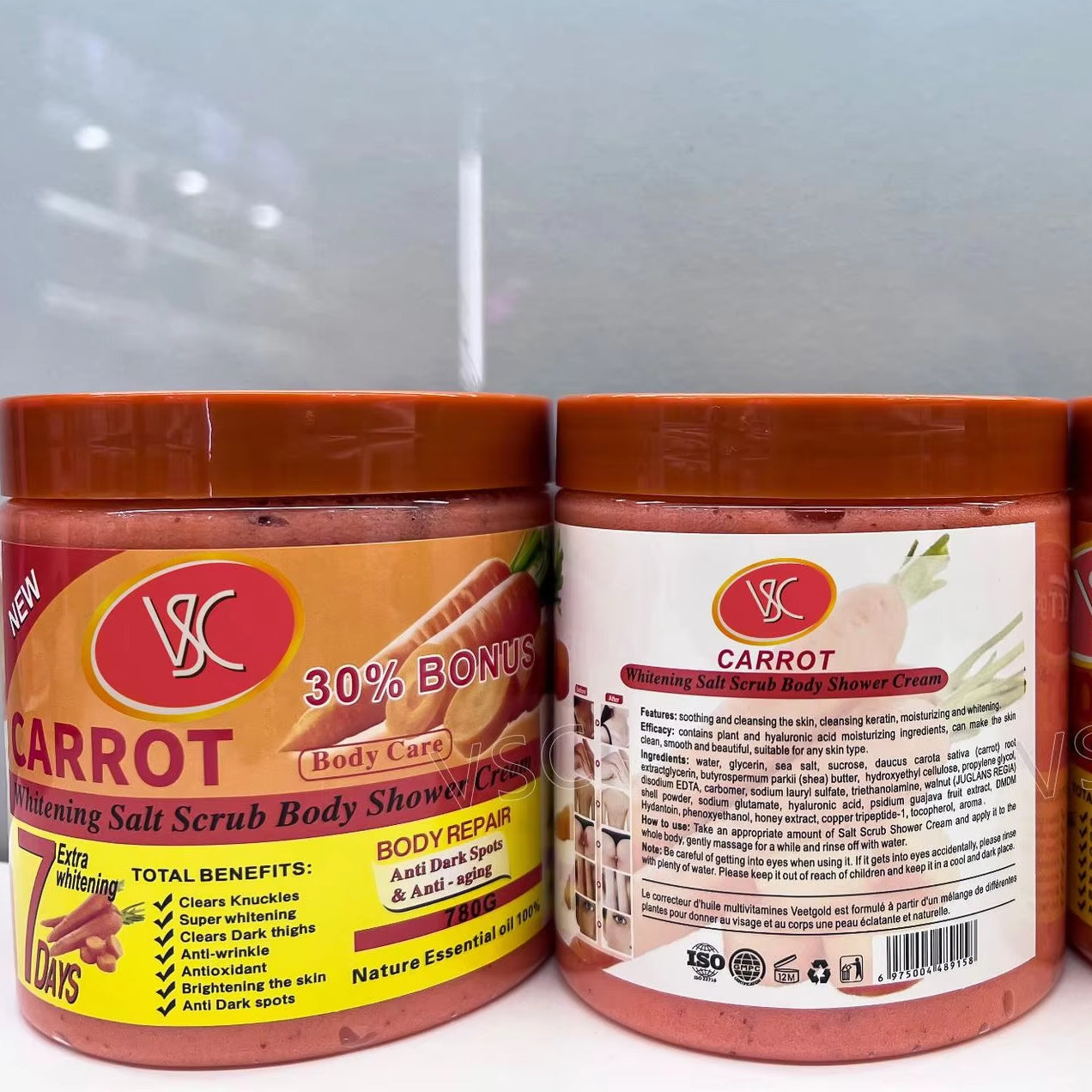 | Article | Crème de douche exfoliante au sel blanchissante à la carotte |
