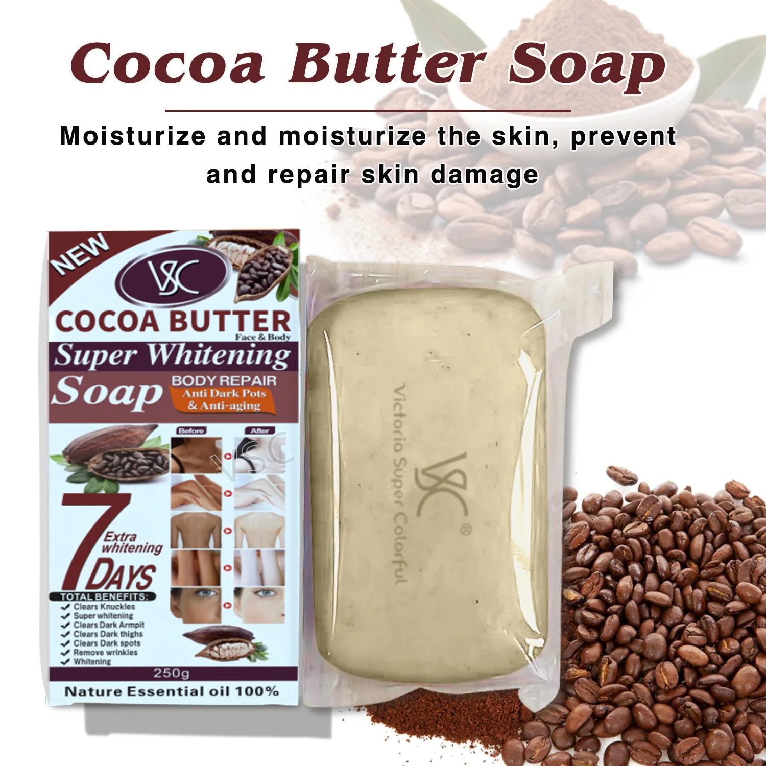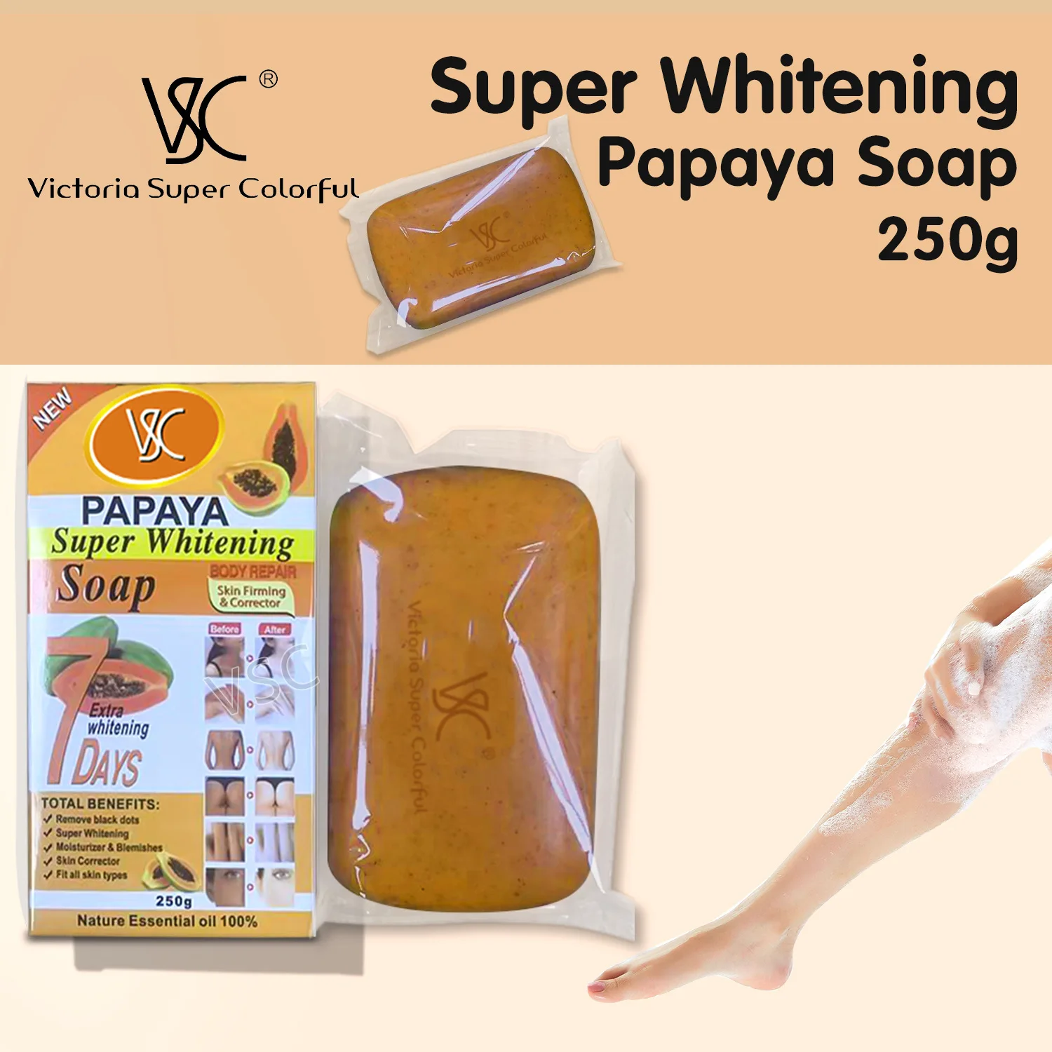 Savon à l'amande et à la vitamine C éclaircissant pour la peau pendant 7 jours, pour le visage et le corps, pour le bain